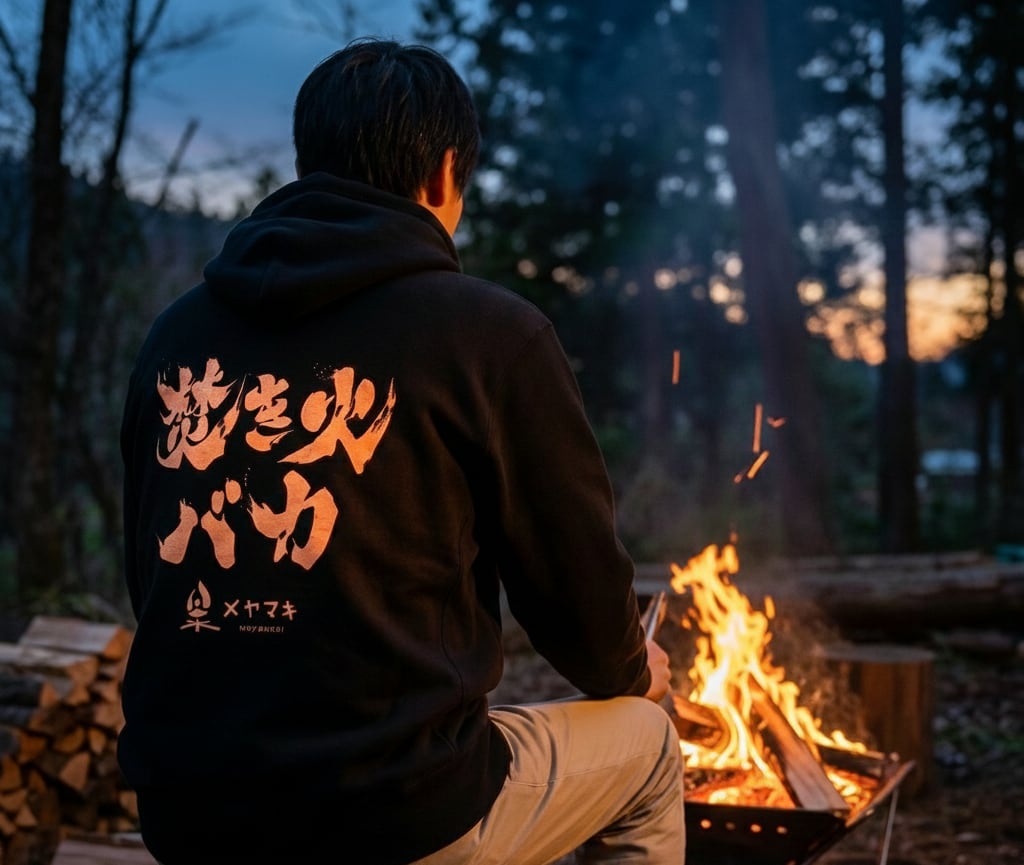 後ろ指さされること間違いなし(笑)のパーカーで焚き火バカっぷりをアピールしてください!!