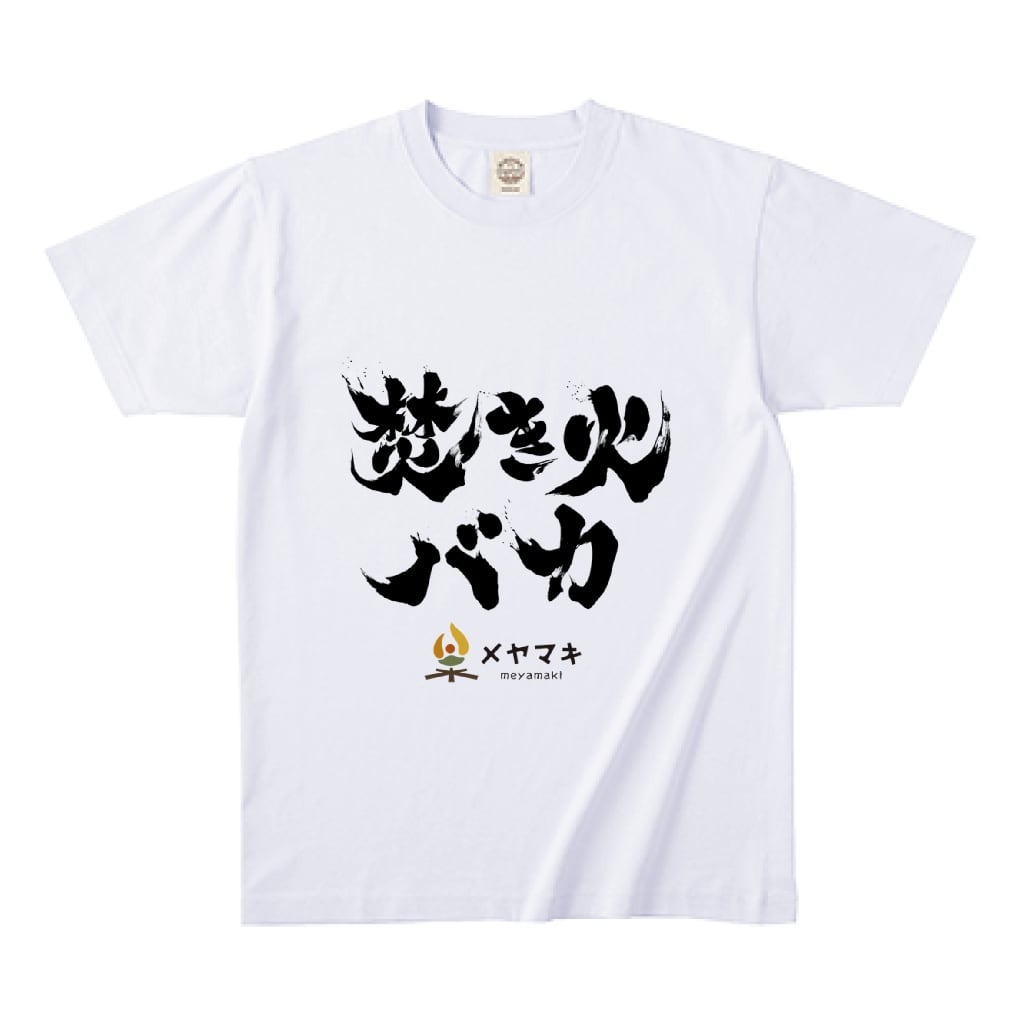 「焚き火バカ」デザインを前面にあしらったTシャツです。あなたの焚き火愛を思いっきりアピールしてください!!