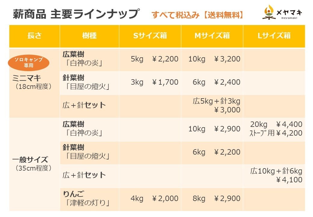 ※焚き付け用針葉樹薪にはランダムでメヤマキの焼き印を押しています。レアですので焼き印入りが入っていたらラッキーです!